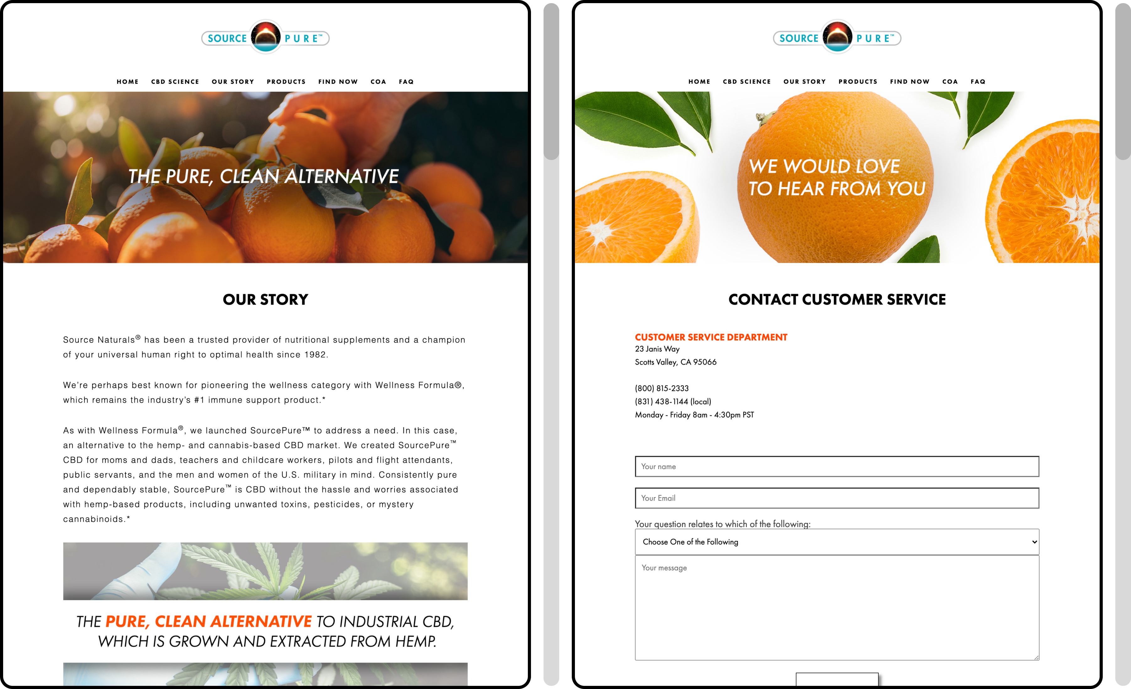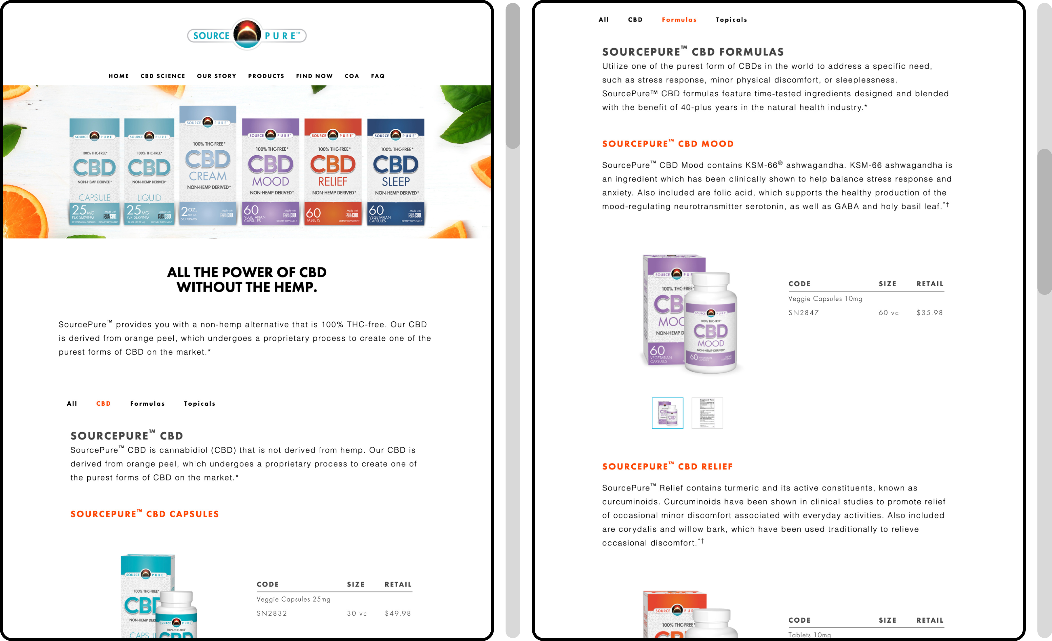 SourcePure offers citrus-derived CBD products designed to support chronic pain relief without the stigma or side effects of traditional alternatives. When I take on a redesign, I don’t just change the visuals—I shift how design is perceived inside the company. For SourcePure, I navigated legal, technical, and budget constraints to create a site that was clean, modern, and unlike anything else in the Source Naturals ecosystem. The result was a more usable, engaging experience that breathed new life into the brand. The sales team was hyped and couldn’t wait to show it off.